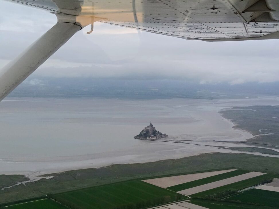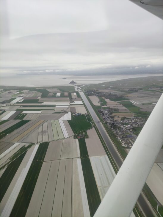 Une masse nuageuse entre Le Mans et Cherbourg nous oblige à faire un petit détour vers l’ouest en passant par Le Mont Saint Michel.