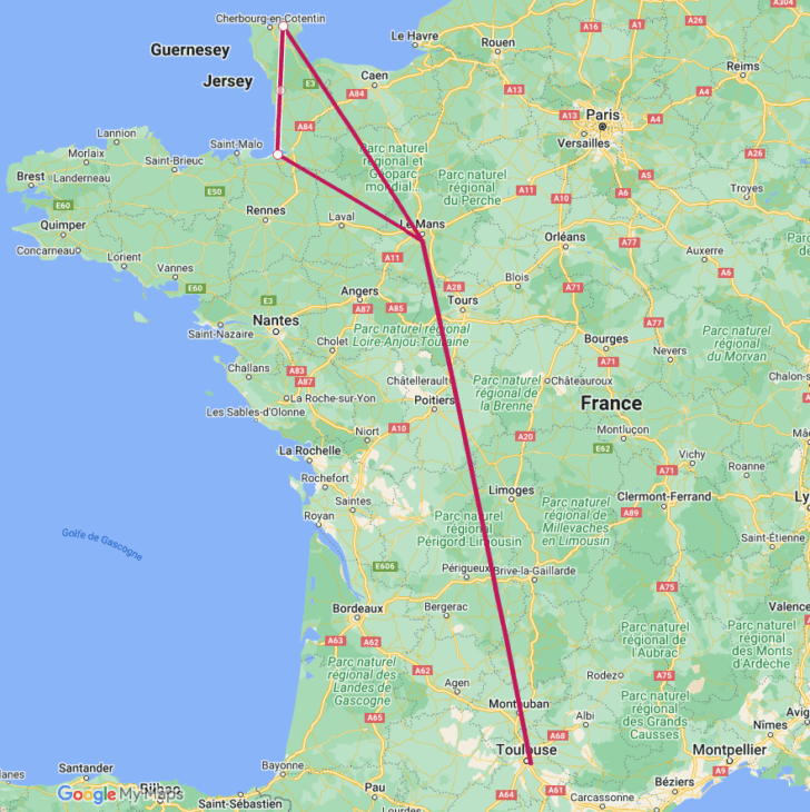 Retour vers Cherbourg via Le Mans pour déposer notre mécanicien.